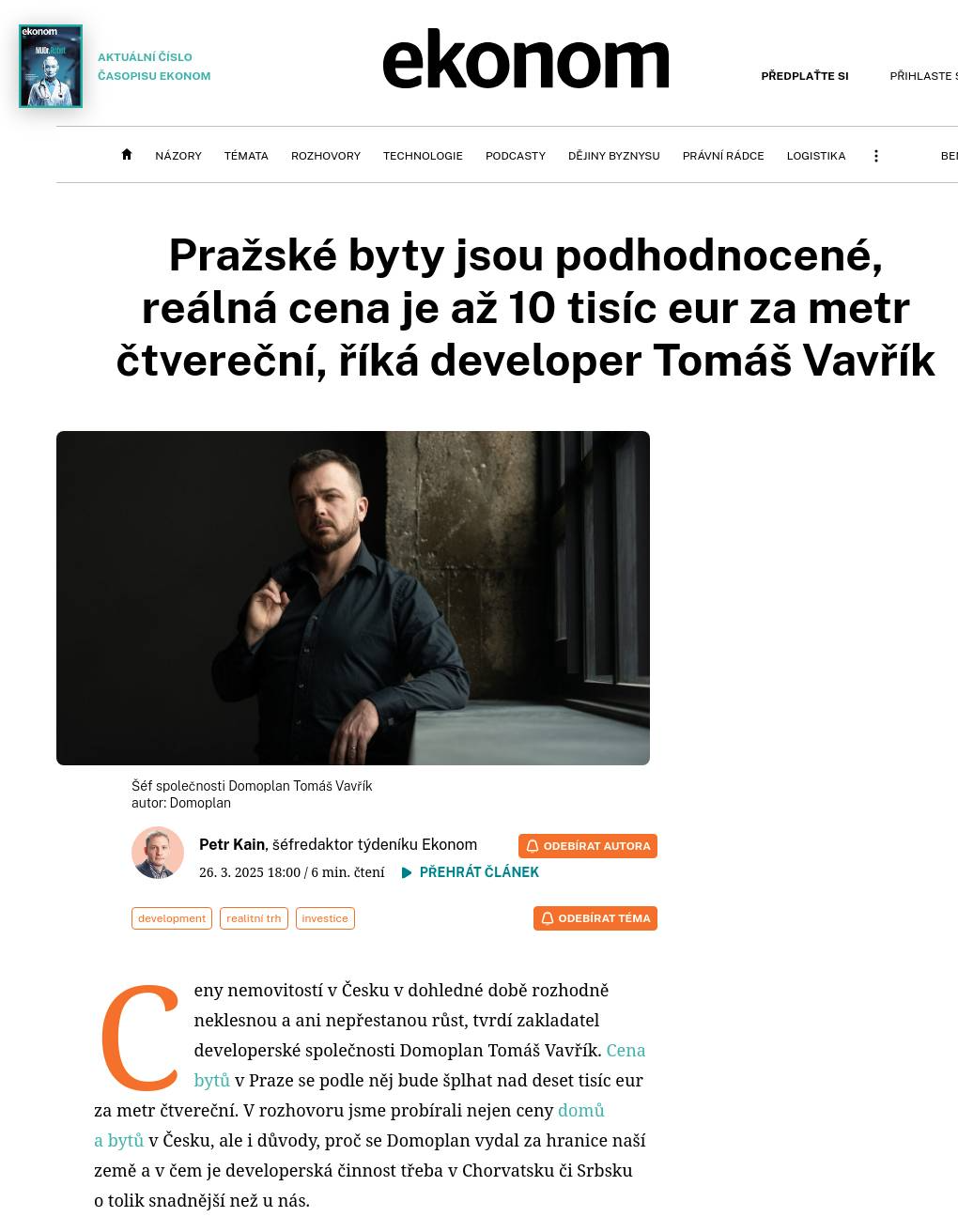 Společnost DOMOPLAN, založená v roce 2010 Tomášem Vavříkem, se zaměřuje na výstavbu rezidenčních projektů s vysokou přidanou hodnotou. Jedinečnost zvolených míst pak citlivě dotváří kvalitní a nadčasovou architekturou. Společnost stojí za brněnskými rezidencemi Pekárenský dvůr, Block A[rt], Starý Pivovar nebo Nová Líšeň. V Brandýse nad Labem vybudoval DOMOPLAN rezidenci Na Mariánské cestě. V roce 2017 začala společnost jako jeden z prvních českých developerů systematicky rozvíjet výstavbu aparthotelů v horských oblastech České republiky. Své působení společnost rozšiřuje také do zahraničí, a to Chorvatska a Srbska. Od roku 2022 je DOMOPLAN členem skupiny FIPOX.