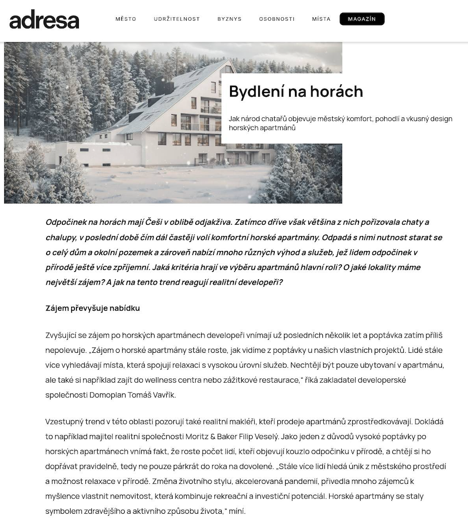 Důležitou součástí naší práce spočívala nejen v komunikace projektů a dalších aktivit společnosti k široké veřejnosti prostřednictvím médií. Naše aktivity směřovaly k zájemcům a budoucím vlastníkům nemovitostí DOMOPLANu, a ke komunitě, které se kolem společnosti vytvořila.
